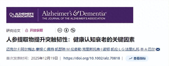 2025年发表于《Alzheimer's & Dementia》的一项创新性研究,首次系统评估了多种植物提取物对溶酶体蛋白酶cathepsin B(CatB)的调节作用,发现美洲人参(Panax quinquefolius, PanQ)提取物能显著增强CatB活性,改善突触韧性,并缓解衰老相关的认知衰退。这项研究通过海马体外植体模型和衰老动物实验,揭示了ALP在认知维护中的核心作用,为膳食干预促进健康老龄化提供了新见解。